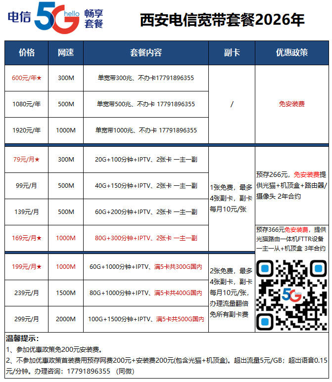 西安电信宽带选款攻略来袭!79元起享300M宽带+通话流量,169元全屋光纤冲1000M,网速稳还划算,总有一款适合你!